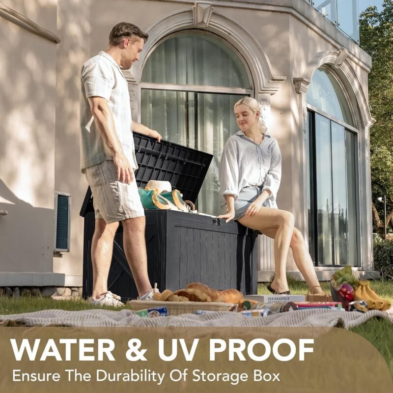 120 Gal Waterproof Deck Box – Resin Outdoor Storage (Black)