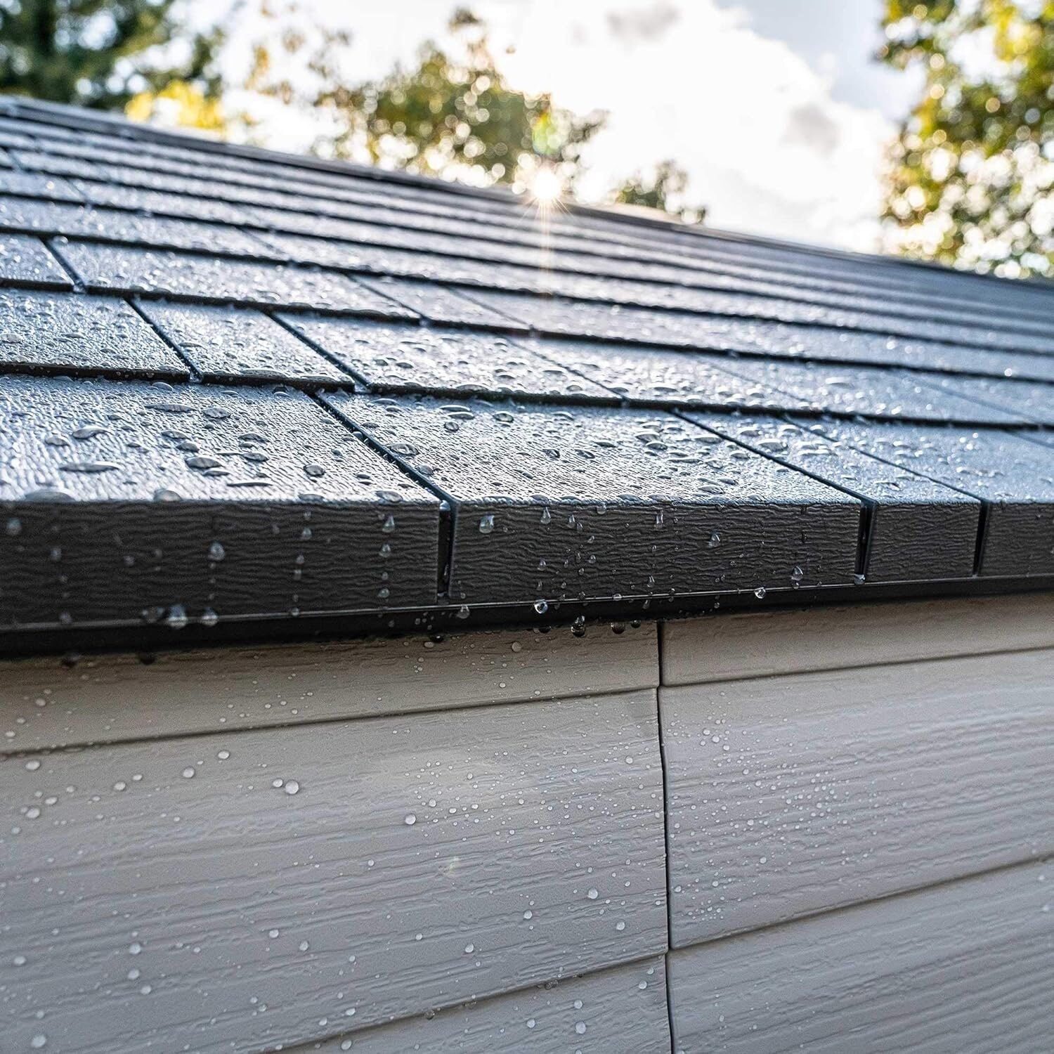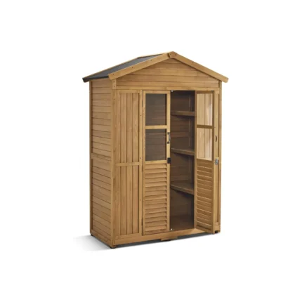 A high-pitched roof promotes efficient water drainage, reducing the risk of leaks or standing water. The shed is engineered for outdoor use in all seasons.